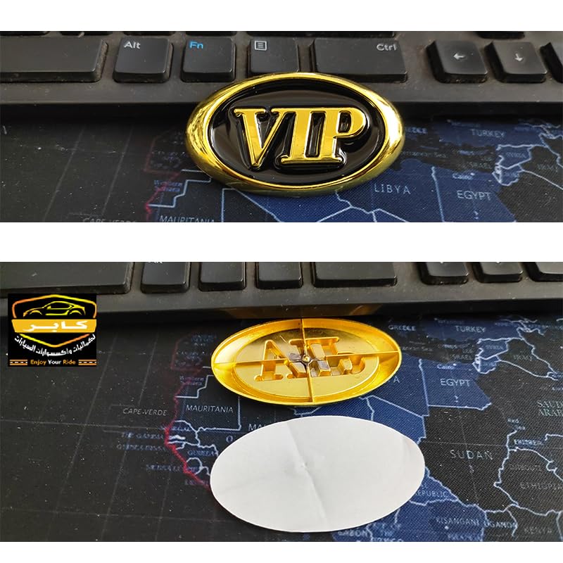 Generic - ملصق ستيكر علامة شعار سيارة ثلاثى الابعاد - معدن جودة عالية ( VIP ذهبى فى اسود ، مقاس : 6*3.5سم ، كود: 8949) - من كابرتريد