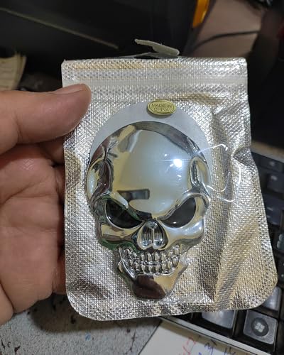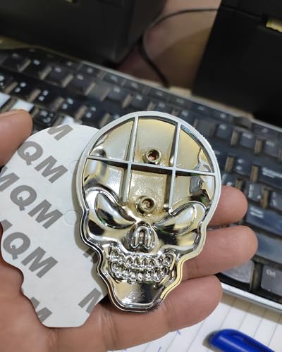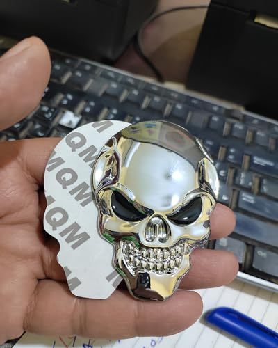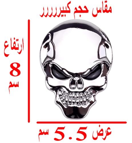 Generic - ملصق ستيكر علامة شعار سيارة ثلاثى الابعاد معدن مناسب للسيارات والدراجات والشاحنات وغيرها - مقاس كبير طول 8 سم فى 5.5 سم - جمجمة سلفر عين اسود - من كابر تريد