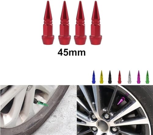 Generic - طقم غطاء ساق صمام اطار السيارة من الالومنيوم مع نمط مسامير رصاصة للدراجات النارية والسيارات من كابر تريد - مقاس قصير بطول 4.5 سم - احمر - من كابر تريد