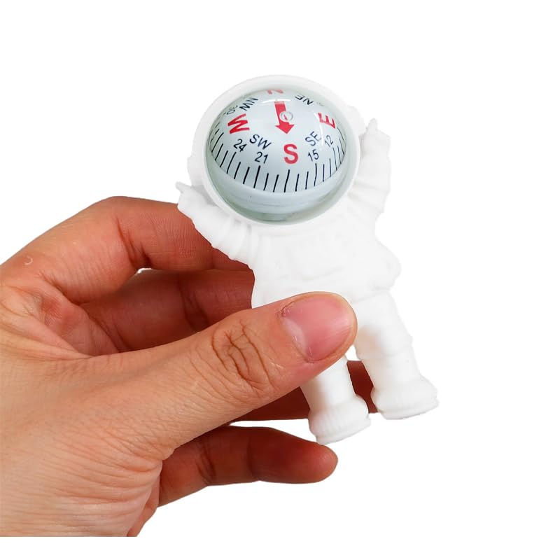 - ✅مجسم بلاستيكي صغير لرائد فضاء يرتدي بدلة فضاء بيضاء كاملة وقناع رأس عبارة عن بوصلة اتجاهات .