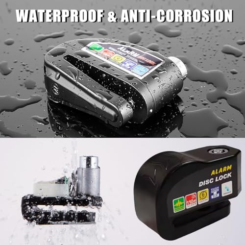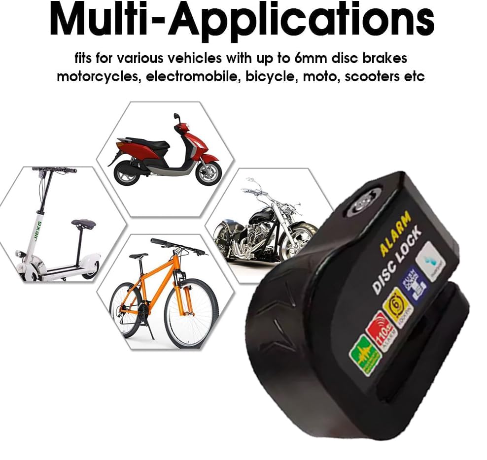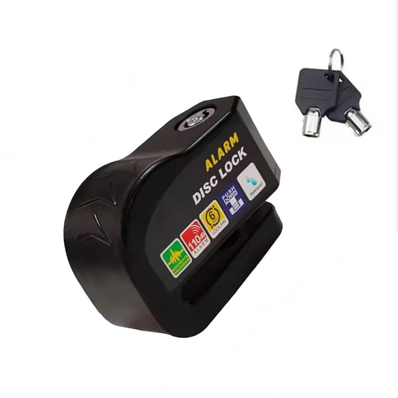 Generic - قفل قرص للفرامل عالي الامان مضاد للسرقة ومقاوم للماء والصدا مع نظام انذار بقوة 110 ديسيبل للموتوسيكلات والدراجات والسكوتر (لون اسود ) - من كابر تريد