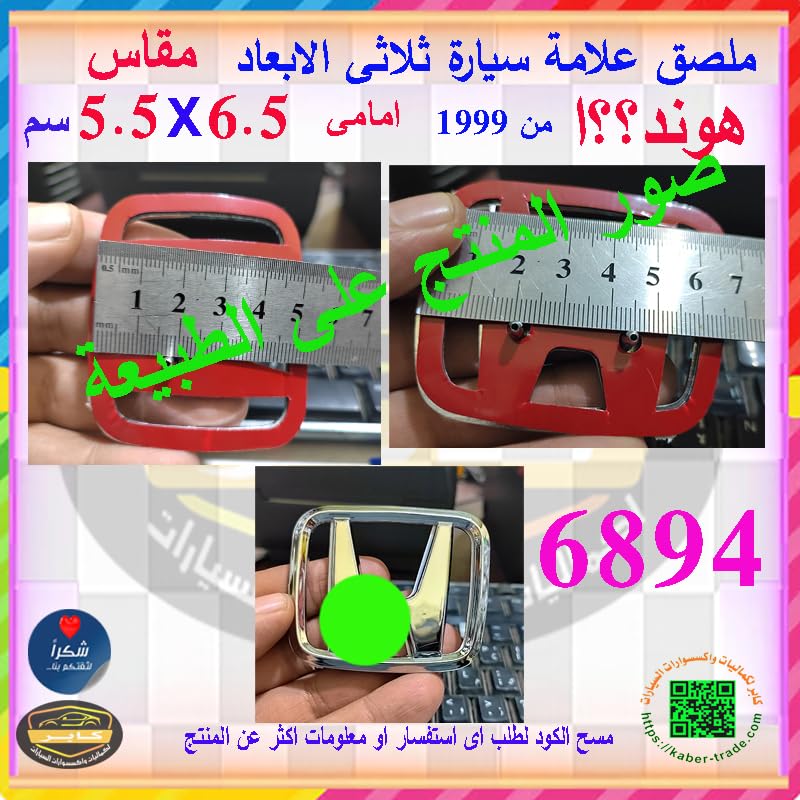 Generic - ملصق ستيكر علامة شعار سيارة ثلاثى الابعاد بديل اساسى لشارة السيارة ( علامة متوافقة مع هون؟دا امامى ، مقاس 6.5 * 5.5 سم ، كود : 6894) - من كابر تريد