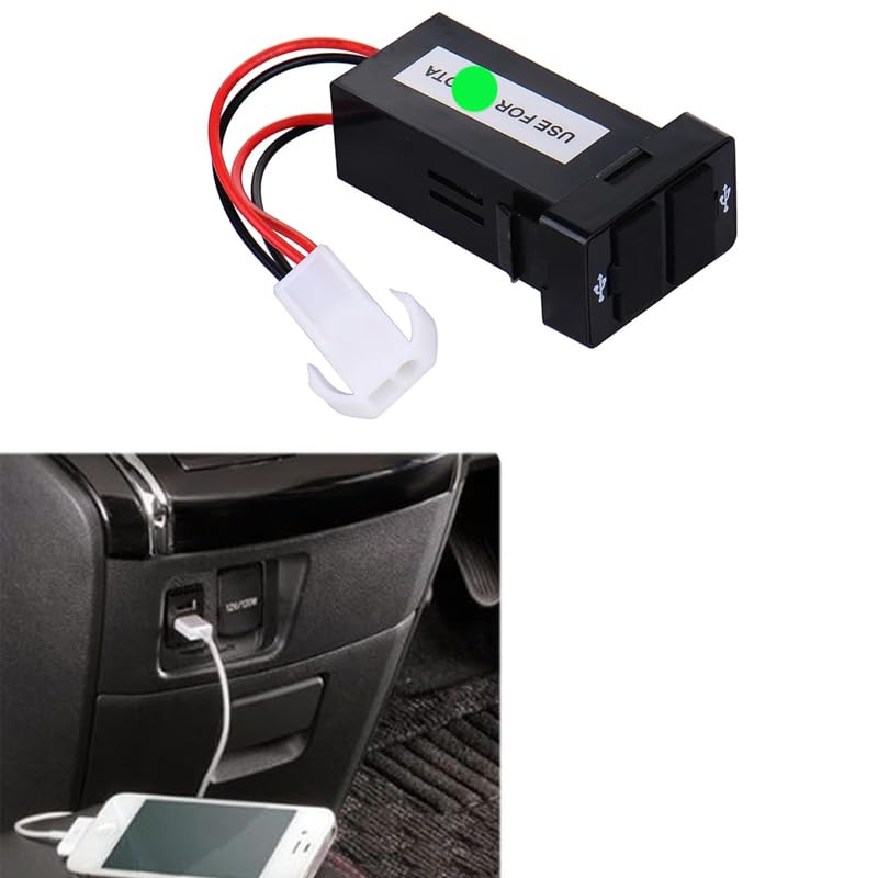 Generic - شاحن سيارة بمدخلين USB مع مقبس صوت ، لتابلوة السيارة ( متوافق مع تويو؟؟ ومعظم السيارات الاخرى ، كود : 8501 ) - من كابر تريد