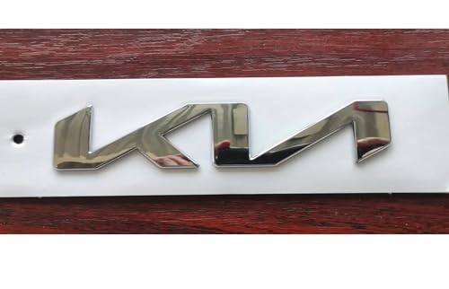 - ملصق ستيكر علامة شعار سيارة ثلاثى الابعاد منتج معدن - متوافق مع كلمة كيا الجديدة - مقاس طول 17 سم عرض 4 سم لون سلفر