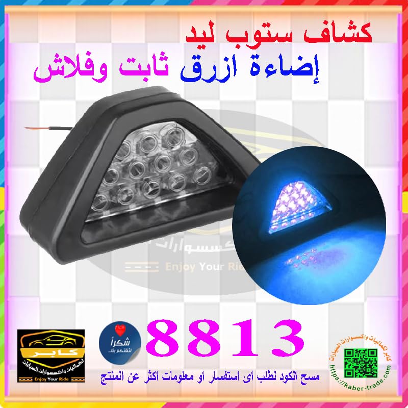 Generic - مصباح فرامل خلفي ثالث للسيارة، ليد ايقاف عالمي للسيارة، كشاف عكسي للضباب، مثلث وامض، ضوء تحذير ( اضاءة ازرق ، ثابت وفلاش ، كود : 8813) - من كابر تريد