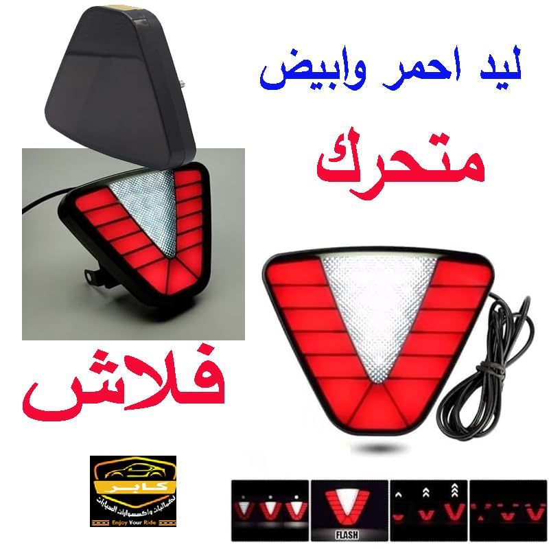 Generic - مصباح إيقاف خلفي ثالث ليد وامض فلاش ، تصميم مثلث جذاب ، للسيارات والموتوسيكلات والاسكوتر وغيرها ( فريم اسود ، ليد احمر وابيض فلاش ومتحرك ، كود : 9110) من كابر تريد
