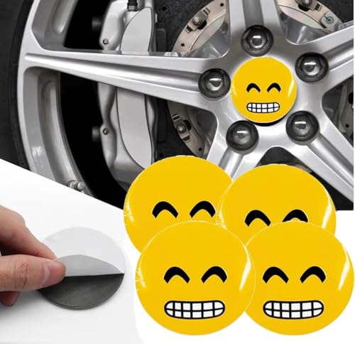 Generic - طقم غطاء محور اطارات السيارة لصق مقاس 56 ملم، أغطية مقاومة للغبار والصدأ والماء، ملحقات لاصقة لتزيين جنط العجلة - شكل سمايل كود 5585 - من كابر تريد