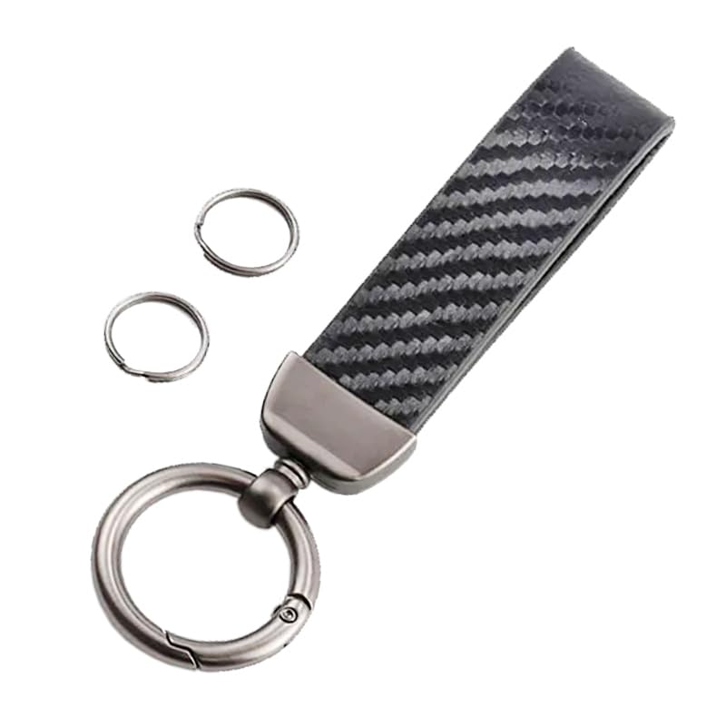 Generic - ميدالية وسلسلة مفاتيح سيارة كاربون اسود من الجلد وحلقات معدن مناسبة لمفاتيح السيارة والدراجات النارية ومفاتيح العائلة - متوافقة مع ام - - جى - كابر تريد
