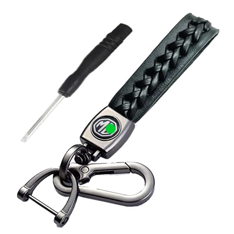 Generic - ميدالية وسلسلة مفاتيح سيارة جلد مضفرة مناسبة لمفاتيح السيارة والدراجات النارية ومفاتيح العائلة - متوافقة مع ام -- جى - من كابر تريد اسود