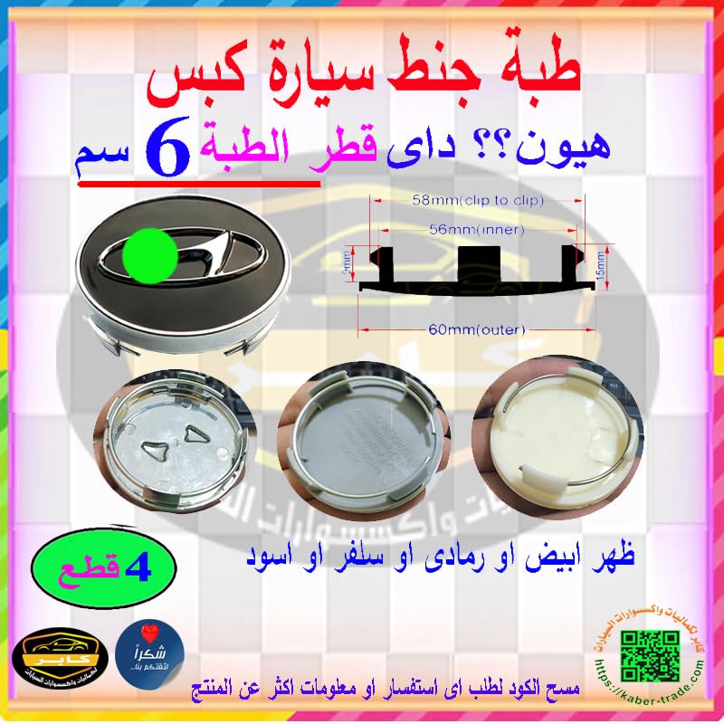 Generic - مجموعة من 4 غطاء محور جنط اطارات السيارة . مناسبة لمحاور مركز العجلات الأمامية أو الخلفية ( هيون؟؟ ، اسود قطر 6 سم ، كود : 8496) - من كابر تريد