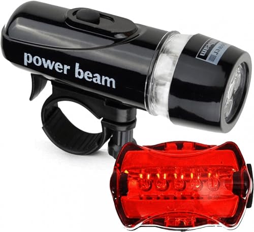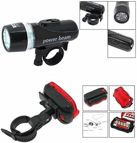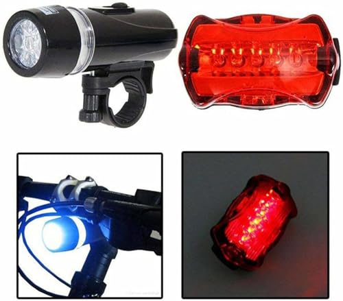 Generic - مصباح وكشاف ليد خلفى وامامى للدراجات الهوائية وغيرها - 2 قطعة ( قطعة خلفى اضاءة احمر ثابت ورعاش وقطعة امامى كشاف ابيض ليد ) - من كابر تريد