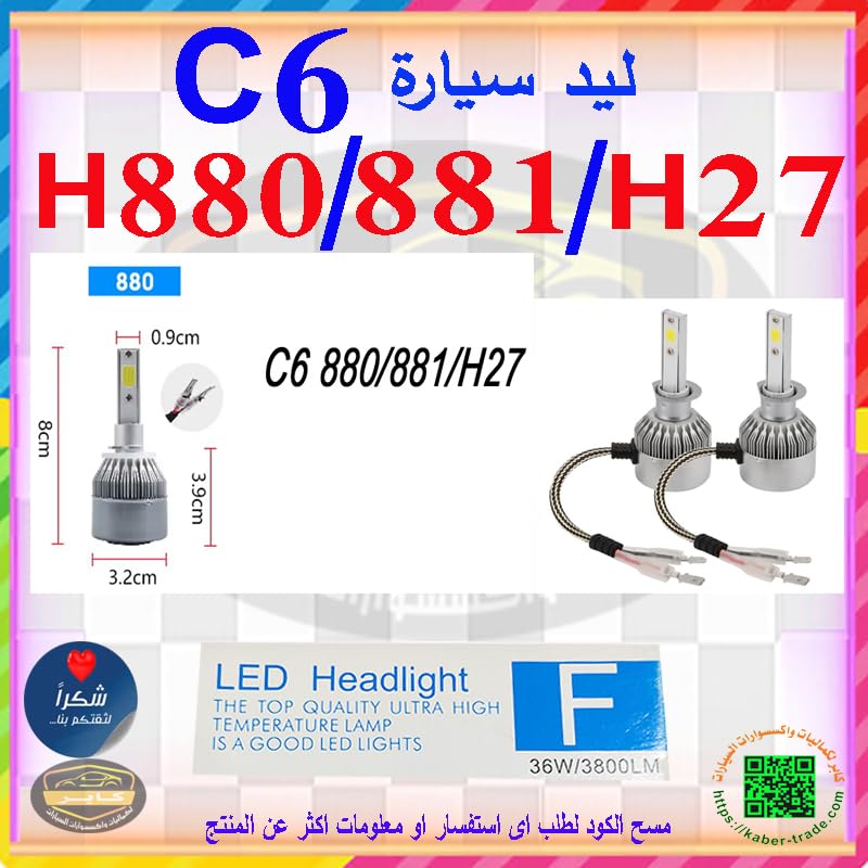 Generic - مصابيح اضاءة ليد مع مروحة تبريد للسيارات والشاحنات ، مجموعة مصابيح ليد، لمبة فانوس أمامية ( طقم 2 قطعة -C6-H880-H881-H27) - من كابر تريد