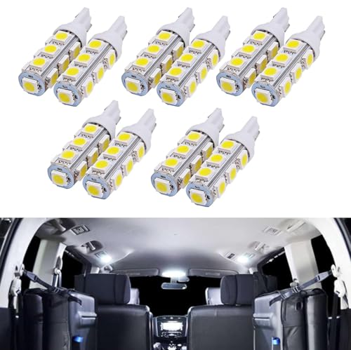 Generic - مصابيح LED T10 / W5W 13 اس ام دي 5050 فائقة السطوع 194 168 2825 ، مصابيح LED بديلة لمصابيح السيارة الداخلية T10-13SMD-5050 - تيار مستمر 12 فولت - أبيض 13 ليد - 10 قطع - من كابر تريد