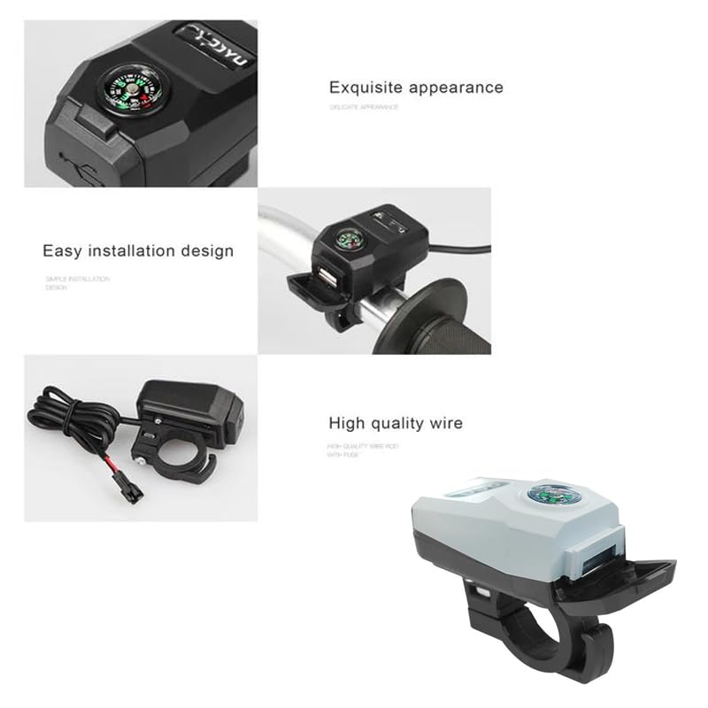 - ✅يمكن تثبيته على مقود الدراجات النارية ، شاحن بتقنية USB، متوافق مع الهواتف الخلوية والموتوسيكلات ودراجات التضاريس والدراجات ثلاثية العجلات، بمنفذ واحد