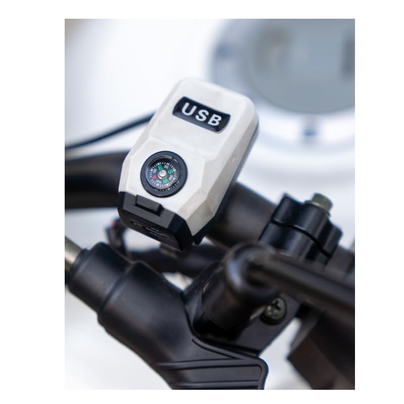 Generic - شاحن موبايل USB على مقود الدراجة النارية والموتوسيكل والاسكوتر مع بوصلة (لون ابيض فى اسود ، كود: 9605) من كابر تريد