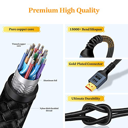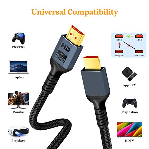 KableRika - كابل HDMI بدقة 4K 60 هرتز، HDMI 2.0 سرعة عالية حتى 18 جيجابت في الثانية متوافق مع 4K HDR 3D 2160p 1080p مزود بسلك مضفر متوافق مع الإيثرنت ARC PS4/5 Fire TV تلفزيون UHD والكمبيوتر من كابليريكا طول 3 م
