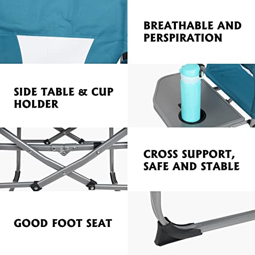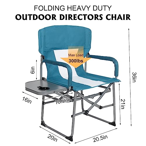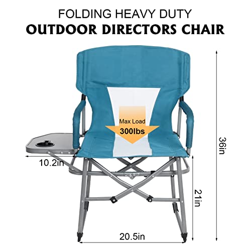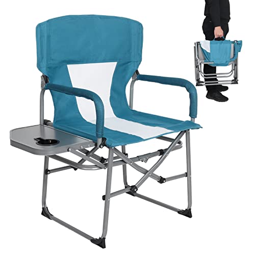KABOER - كرسي مدير محمول قابل للطي للتخييم شديد التحمل مع طاولة جانبية مضغوط بظهر شبكي للاماكن الخارجية والحديقة والرياضة وصيد الاسماك والنزهات والمشي لمسافات طويلة يدعم وزن 300 باوند مطاط أخضر