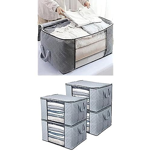 Generic - مجموعة مكونة من شنطة تخزين الملابس والبطانيات كابوتين + شنط بوكس ليجند - عبوة 4 قطع - 90 لتر رمادي ايه بي اس