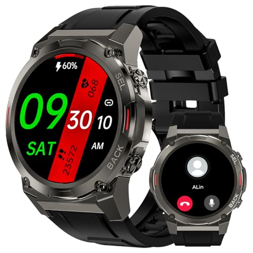 KACLUT - ساعة ذكية اموليد 1.43 بوصة بعمر بطارية 70 يوم و100 وضع رياضي، ساعة عسكرية متينة ومقاومة للماء حتى 100 م لموبايل أندرويد وآيفون (استقبال/إجراء المكالمات) لتتبع اللياقة البدنية ومراقبة القلب من كالكوت