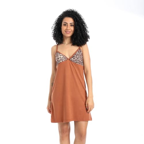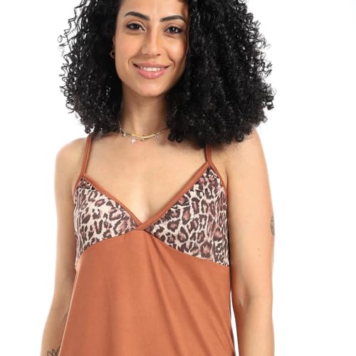 KADY - قميص نوم نسائي مطبوع عليه القهوة مع حمالات رفيعة مطبوع بلون بني وأشرطة رفيعة