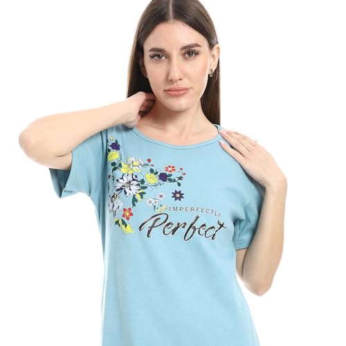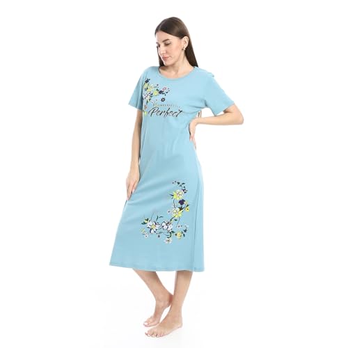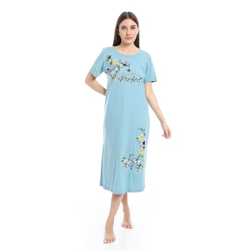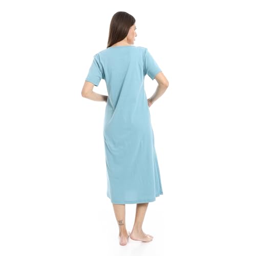 KADY - قميص نوم طويل مريح باكمام قصيرة للنساء بلون ازرق فاتح من نوكتورا