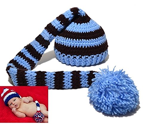 Kafeimali - كافيملي قبعة صغيرة محبوكة من الكروشيه بذيل طويل بيبي كريسماس ازرق مقاس واحد