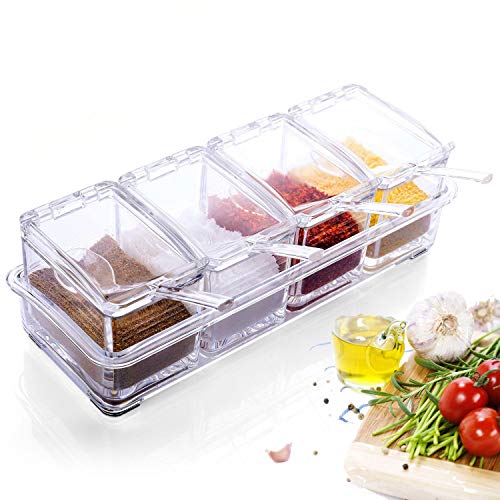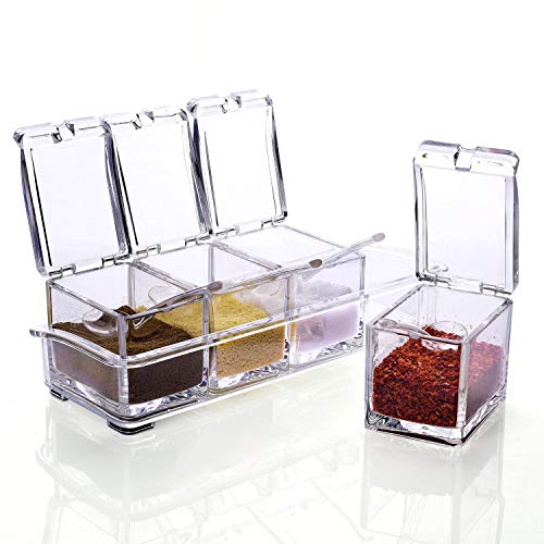Kai Bao - صندوق بمجموعة برطمانات أكريليك للبهارات - علبة توزيع الملح والبهارات للمطبخ من كاي باو