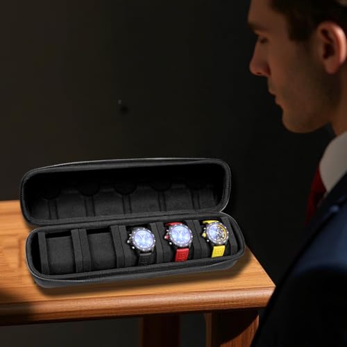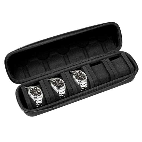 Kai Tian - حافظة ساعة من مادة ايفا متعددة الفتحات للرجال، صندوق ساعة انيق مع قفل ميكانيكي وحامل ايرتاج لحماية الخصوصية، منظم تخزين الساعات (5 فتحات)