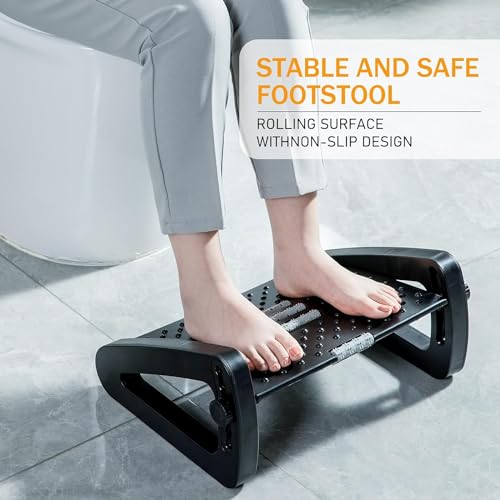 Kaiderine - مسند قدمين مريح قابل للتعديل بستة ارتفاعات مع بكرة تدليك وأرجل ثابتة مانعة للانزلاق، مسند قدمين محمول للاستخدام تحت المكتب في المنزل أو المكتب من كايدرين، أسود