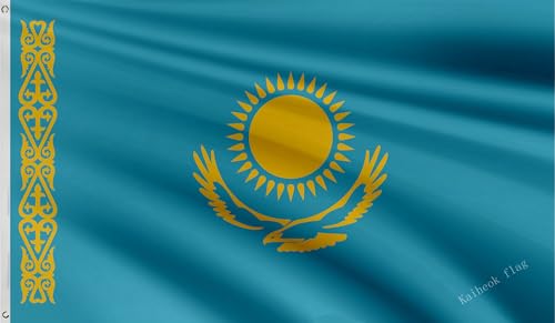 kaiheok - علم كازاخستان مقاس 3 × 5 قدم / 90 × 150 سم، علم كازاخستان من البوليستر مع فتحتين معدنيتين - رأس قماش وخياطة مزدوجة - مثالي للطيران في منطقة الرياح المنخفضة.