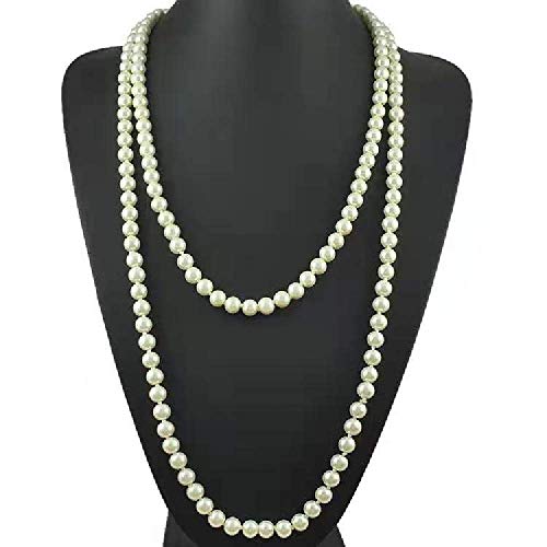 KAIPUTE - كيهبوت عقد لؤلؤ صناعي دائري ابيض للنساء (6-10 ملم، 15.7 انش)