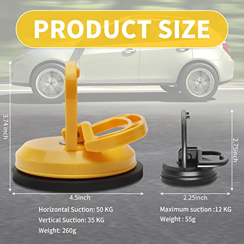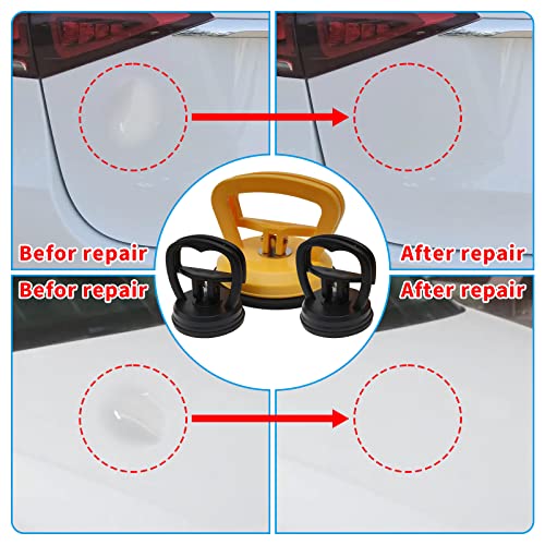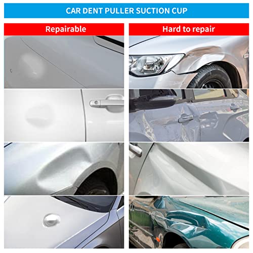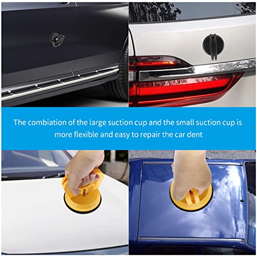 - 【أداة إصلاح الانبعاجات】1 × كوب شفط 4.5 انش، 2 × كوب شفط 2.25 انش. تتيح لك مجموعة أدوات إصلاح الانبعاجات المزودة بقاعدة تثبيت بالشفط إزالة الضربات والانبعاجات الصغيرة في مناطق معينة من سيارتك. (يرجى التأكد من أن الانبعاج على السطح المستوي ويجب أن يكون أكبر من قطر كوب الشفط السفلي.)