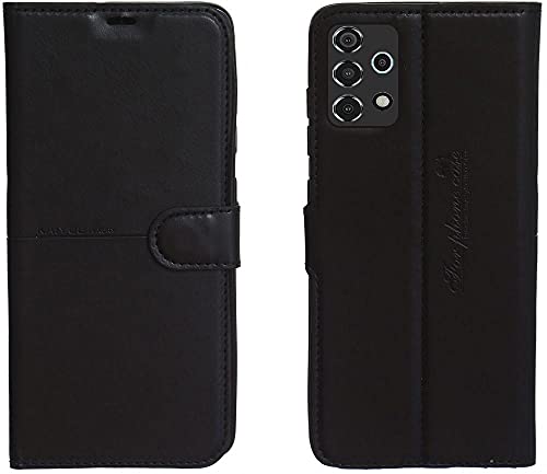 Kaiyue - جراب جلد كايي محفظة ذكية حامي للكاميرا لهاتف سامسونج جالاكسي A72 - أسود