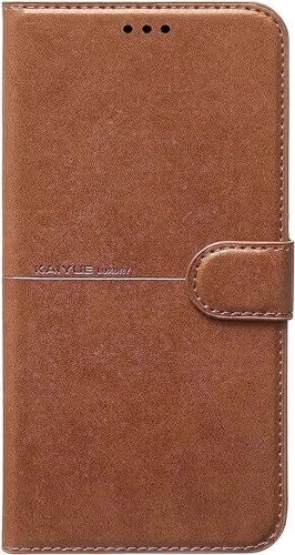 KaiYue - جراب جلد قابل للطي لموبايل ريلمي C31 من كايو، بني، حافظة بسيطة
