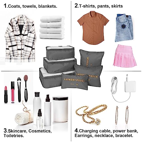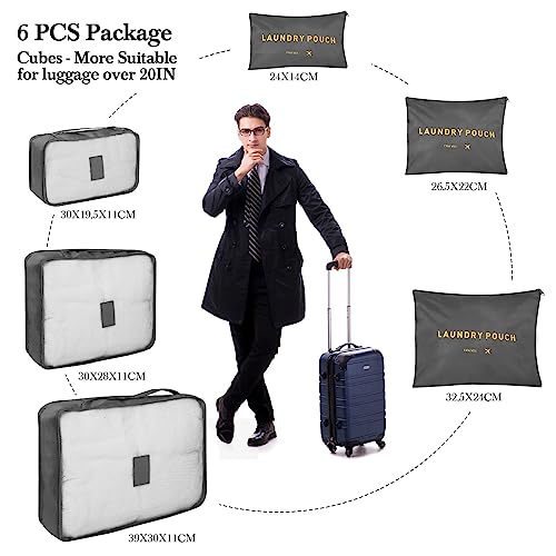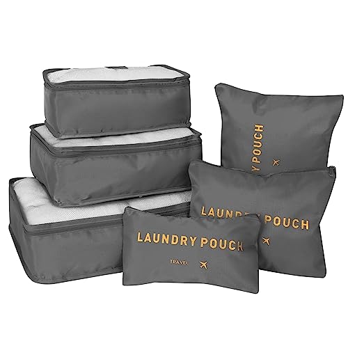 Kaket - مكعبات تعبئة من كاكيت، 6 قطع من حقائب تنظيم شنط السفر، مكعبات سميكة لتنظيم السفر، مكعبات تعبئة خفيفة الوزن لشنط السفر، تعبئة مضغوطة لشنط اليد (رمادي)، نايلون