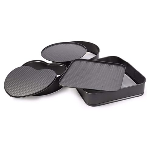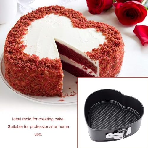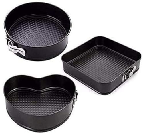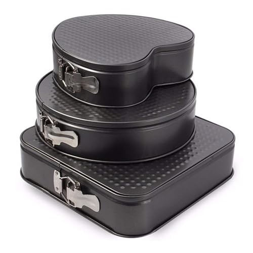 KAKKI - طقم صواني كيك بتصميم دائري ومربع وعلى شكل قلب، صواني مقاومة للالتصاق مع سوستة سريعة الفك، لحفلات الزفاف واعياد الميلاد والكريسماس، لصنع كيك ريد فيلفت وبلاك فورست، 3 قطع، صلب كربون، من كاككي، أحمر