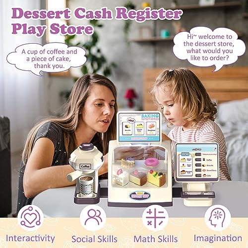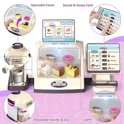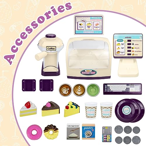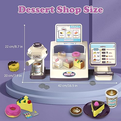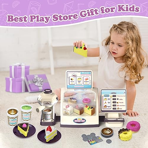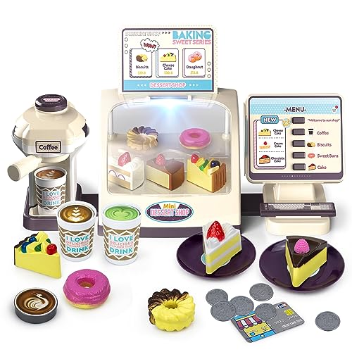 KalaDuck - مجموعة العاب ماكينة تحضير القهوة للاطفال من كالاداك مع صوت واضواء للعب التظاهري مع لعبة تسجيل النقود، متجر حلوى الكيك واللعب، لعبة ماكينة تحضير القهوة للاطفال الصغار من عمر 3 سنوات فما فوق للاولاد