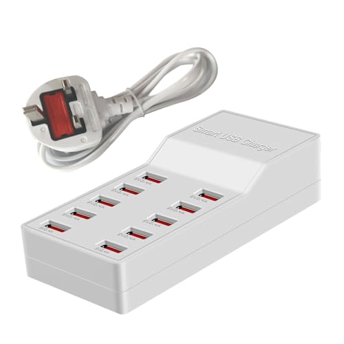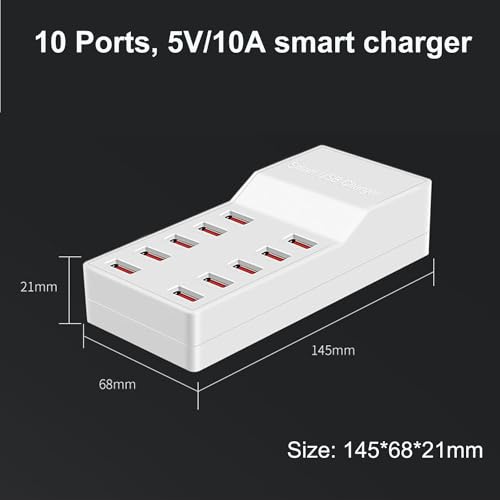Kalakila - شاحن USB 10 منافذ 50 وات، محطة شحن متعددة المنافذ، مناسب للموبايلات والتابلت وأجهزة USB الأخرى من كالاكيلا (أبيض)