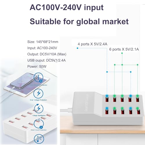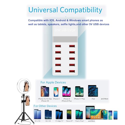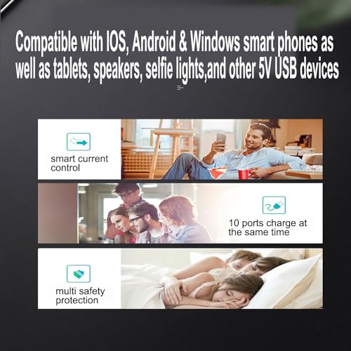 - 【شاحن USB يصل إلى 10 منافذ】 - مزود بما يصل إلى 10 منافذ، تدعم قاعدة شحن USB هذه شحن أجهزة متعددة في نفس الوقت. لا يسمح لك فقط بشحن أجهزتك المنزلية دون القلق بشأن العثور على المقابس المتاحة ولكن أيضًا يجعل رحلاتك أسهل وأكثر راحة من أي وقت مضى.
