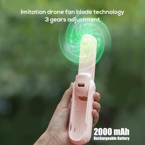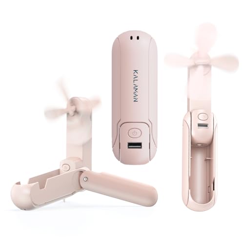 KALAMAN - مروحة يدوية صغيرة متعددة الوظائف 4 في 1 قابلة لإعادة الشحن عبر USB بـ3 سرعات قابلة للتعديل مزودة بإضاءة وتصميم مناسب لحمل الموبايل للسفر والصيف والحفلات من كالامان - وردي