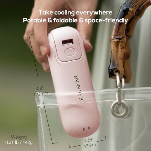- التصميم: مصممة بشكل فريد بحجم راحة اليد، تتناسب المروحة المحمولة بسهولة مع أي حقيبة من أجل الراحة أثناء التنقل.