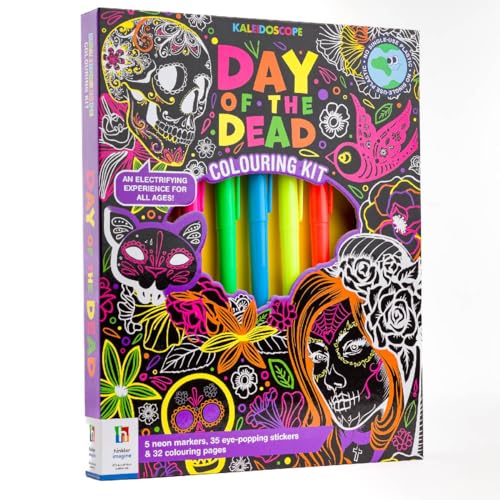 Hinkler Pty Ltd - هينكلر مجموعة تلوين داي اوف ذا ديد كاليدوسكوب مع كتاب و5 اقلام نيون | تلوين وملصقات للهالوين