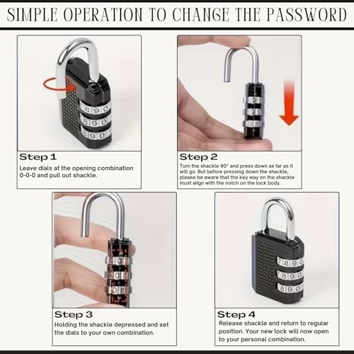 - راحة بدون مفتاح - توفر المجموعة القابلة لإعادة الضبط المكونة من 3 أرقام 1000 رمز محتمل؛ لا حاجة لحمل المفاتيح أو فقدانها.