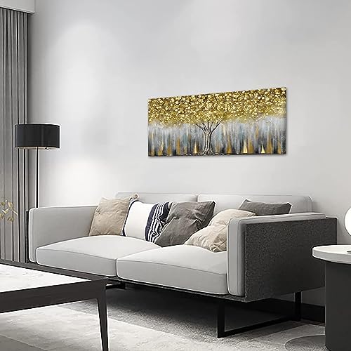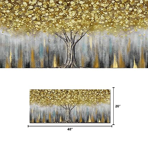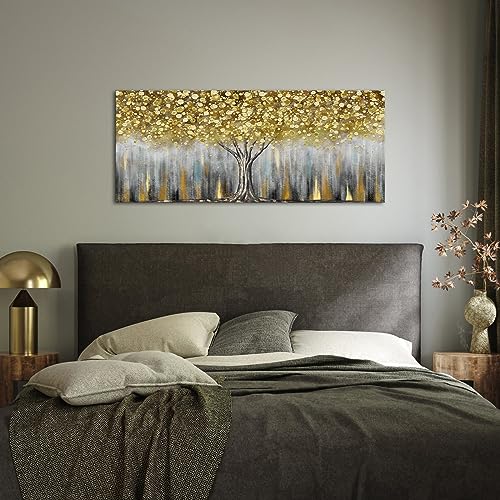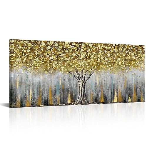Kalormore - لوحة فنية جدارية من القماش بتصميم تجريدي بلون رمادي وذهبي لمشهد شجرة الحياة ومنظر طبيعي مع إطار من كالورمور