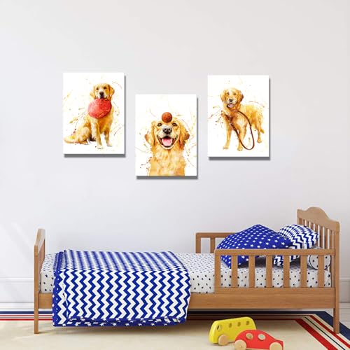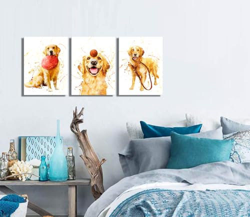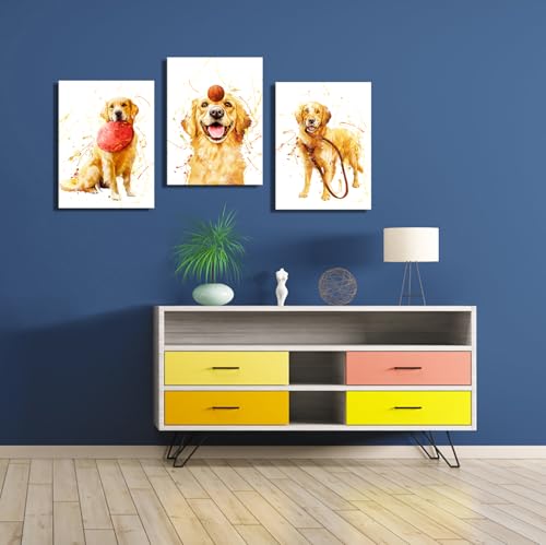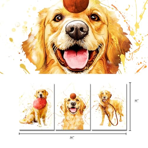 Kalormore - كالورمور لوحة فنية جدارية من القماش بتصميم كلب جرو اصفر مع حبل للكلاب، صور فريسبي، معرض صور ملفوفة باطار للبنات والاولاد وغرفة النوم والحمام وغرفة الاطفال وديكور المنزل والمكتب