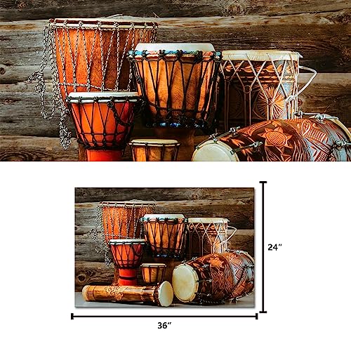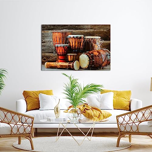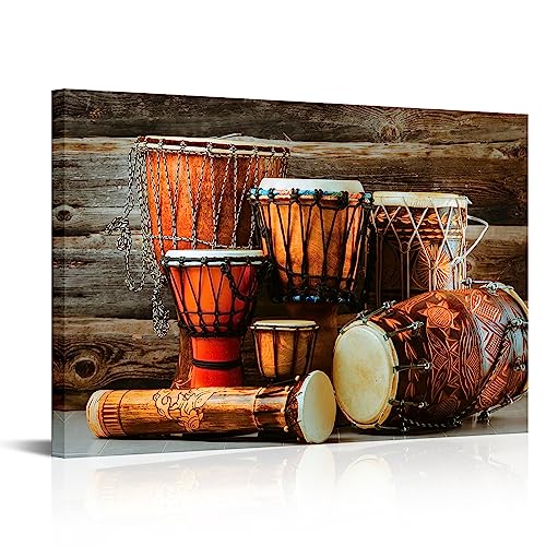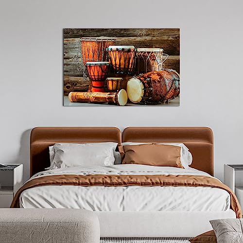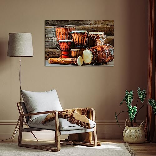 Kalormore - كالورمور لوحة فنية جدارية افريقية تقليدية عتيقة على شكل طبل موسيقى، صور مطبوعة عرقية قديمة، عمل فني مؤطر لغرفة المعيشة، بني