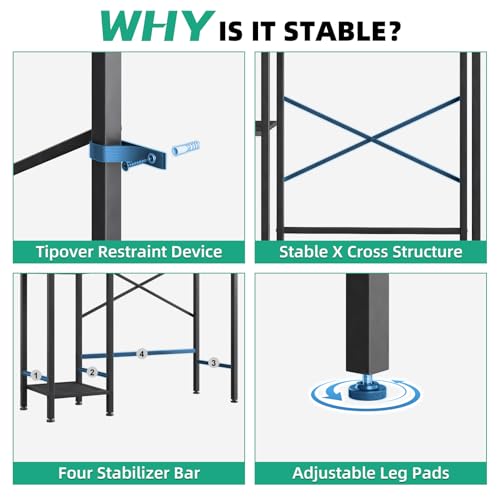 - 【مواد مختارة عالية الجودة】حامل تخزين الحمام فوق التواليت الخاص بنا مصنوع من لوح حُبيبي سميك P2 عالي الجودة وإطار معدني قوي، ويوفر ثباتًا استثنائيًا وقدرة تحمل قوية (حتى 13.6 كيلوجرام لكل طبقة). تعمل قضبان الإطار على شكل حرف X ومسامير تثبيت الحائط على تعزيز السلامة، مما يمنع الرف من الانقلاب. ستة أقدام غير قابلة للانزلاق تضمن الثبات وتحمي الأرضيات من الخدوش.