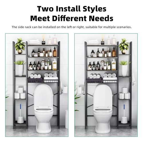 Kalrin - حامل تخزين فوق التواليت من كالرين مع أرفف جانبية إضافية لتخزين أدوات الحمام، حامل من 4 طبقات فوق التواليت مع رف قابل للتعديل وسلة تصريف، منظم حمام قائم بذاته للشرفة والغسيل (رمادي عصري)