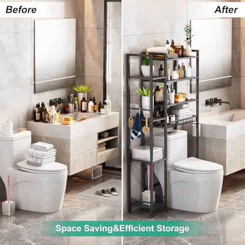 - 【تصميم لتوفير المساحة】تناسب وحدة تخزين التواليت المطورة هذه مقاسات التواليت حتى 89 سم، مما يوفر مساحة أكبر بمقدار 5 سم من الموديلات القياسية لتجنب إعاقة غطاء التواليت. رفوف جانبية إضافية تزيد من مساحة التخزين بنسبة 30%، مثالية للحمامات الصغيرة أو الشقق دون شغل مساحة أرضية كبيرة.