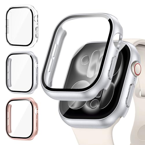Kamita - جراب حماية واقي من الصدمات من البولي كربونات مع شاشة حماية من الزجاج المقوى لساعة آبل سيريز 10 مقاس 42 ملم بحماية من جميع الجوانب من كاميتا (شفاف + فضي +